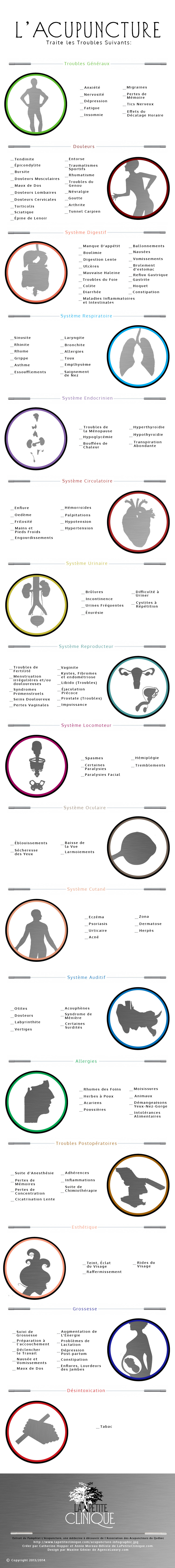Ces points thérapeutiques, ou points d’acupuncture, sont des endroits très précis, au nombre de 365 au total, cartographiés le long du trajet de douzes méridiens énergétiques et documentés par les Chinois depuis des millénaires. Chaque point d’acupuncture possède des caractéristiques et des indications qui lui sont propres et, si stimulé, permet d’aider l’organisme à rétablir et à régulariser la circulation du Qi ainsi que les fonctions physiologiques, organiques et psychiques ciblées.